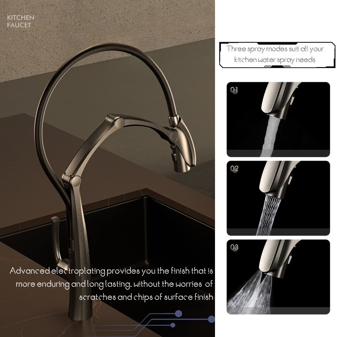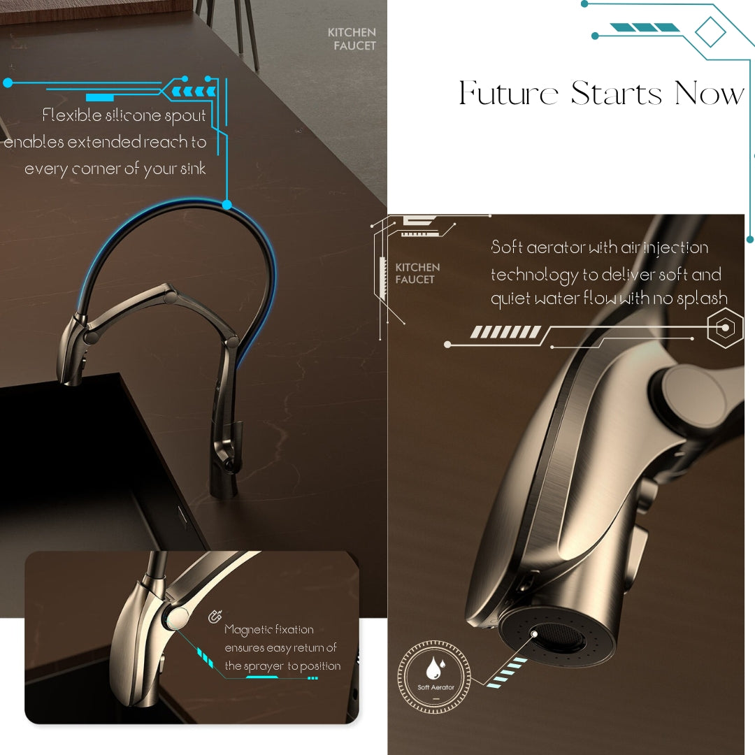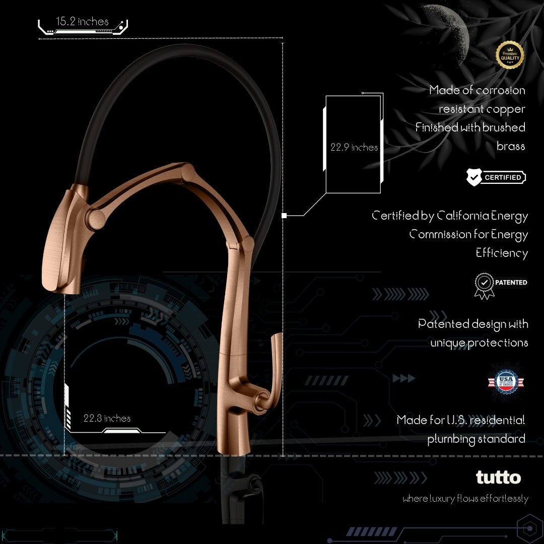 Tutto Copper Robotic-Arm Kitchen Faucet – Magnetic Pull-Down Sprayer Rose Gold